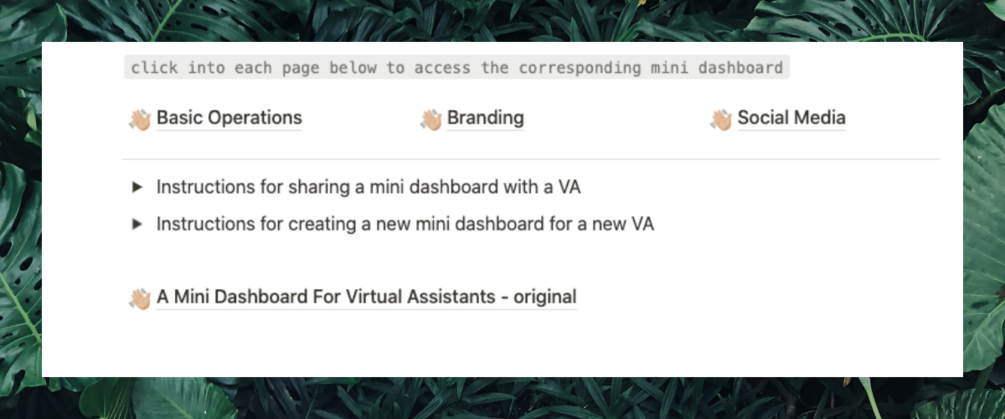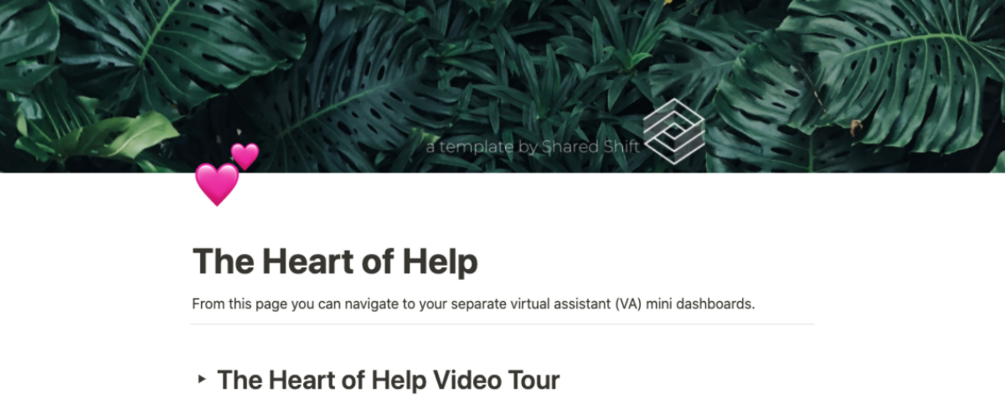 The Notion template, The Heart of Help, builds off of the Mini Dashboard For Virtual Assistants.